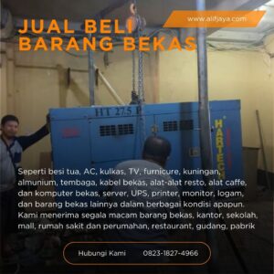 kuningan, almunium, kabel bekas, alat resto, barang hotel, alat-alat caffe, genset, mesin-mesin pabrik, komputer, server,