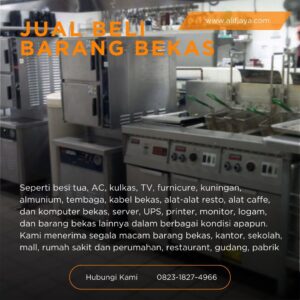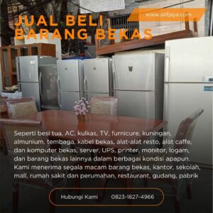 Kami menerima segala macam barang bekas, kantor, hotel, sekolah, mall, rumah sakit dan perumahan, restoran,
